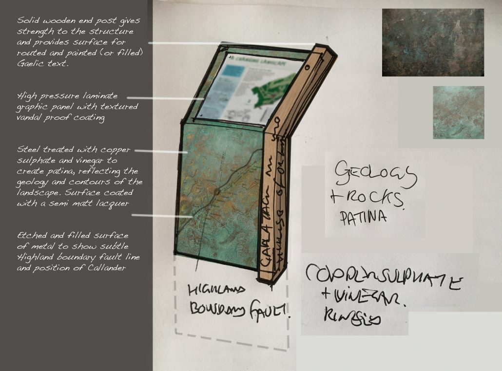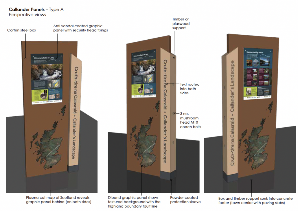 Design concepts, production drawings and finished panels in the fantastic Callander landscape.